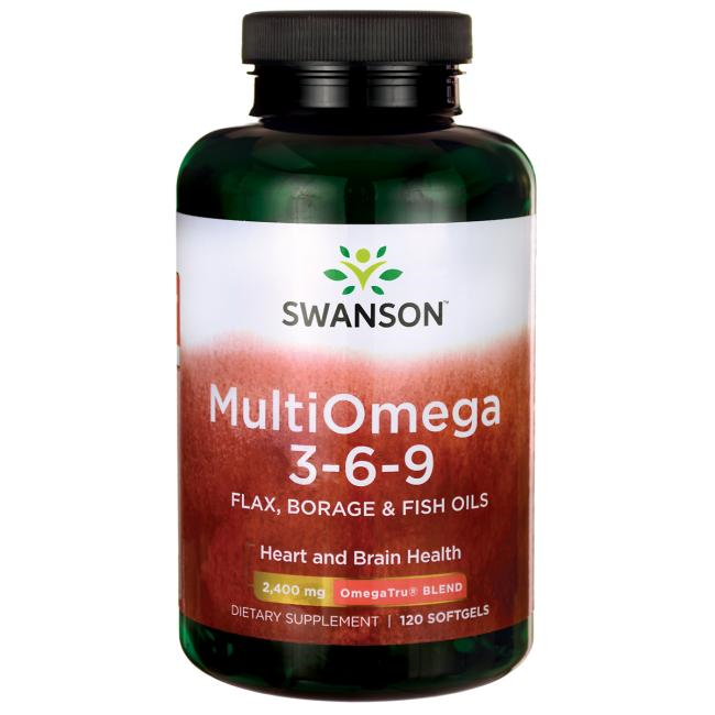 Swanson™ Мульти Омега 3-6-9 Рыбий Жир + Льняное Масло + Масло БурачникаКоличество: 120 капсул.